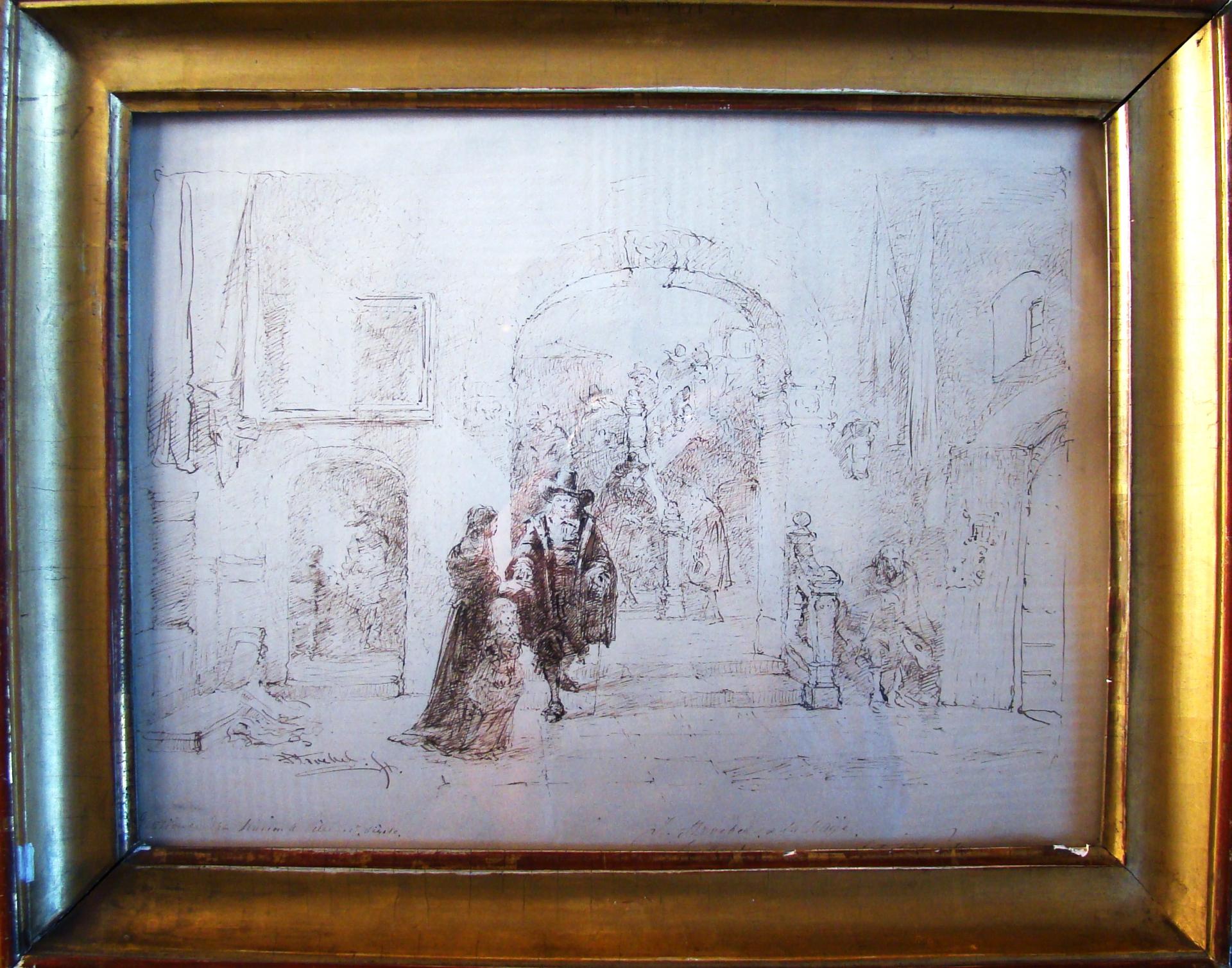 signiert unten links, Federzeichnung, gerahmt, 25.5 x 35.5 cm, ca. 1850