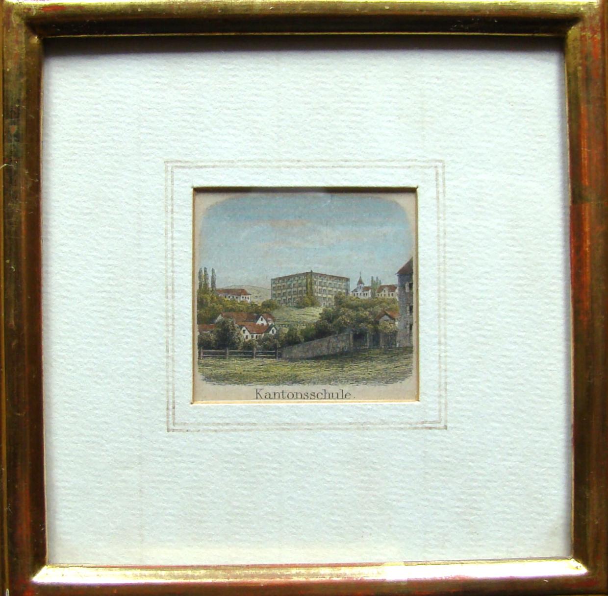 Kupferstich , handcoloriert, gerahmt im Passepartout, 4 x 4 cm, ca. 1870