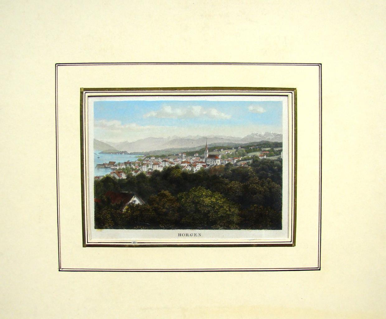 Horgen mit Umgebung, Stahlstich, handkoloriert, im Passepartout, 8.5 x 12.5, 1863
