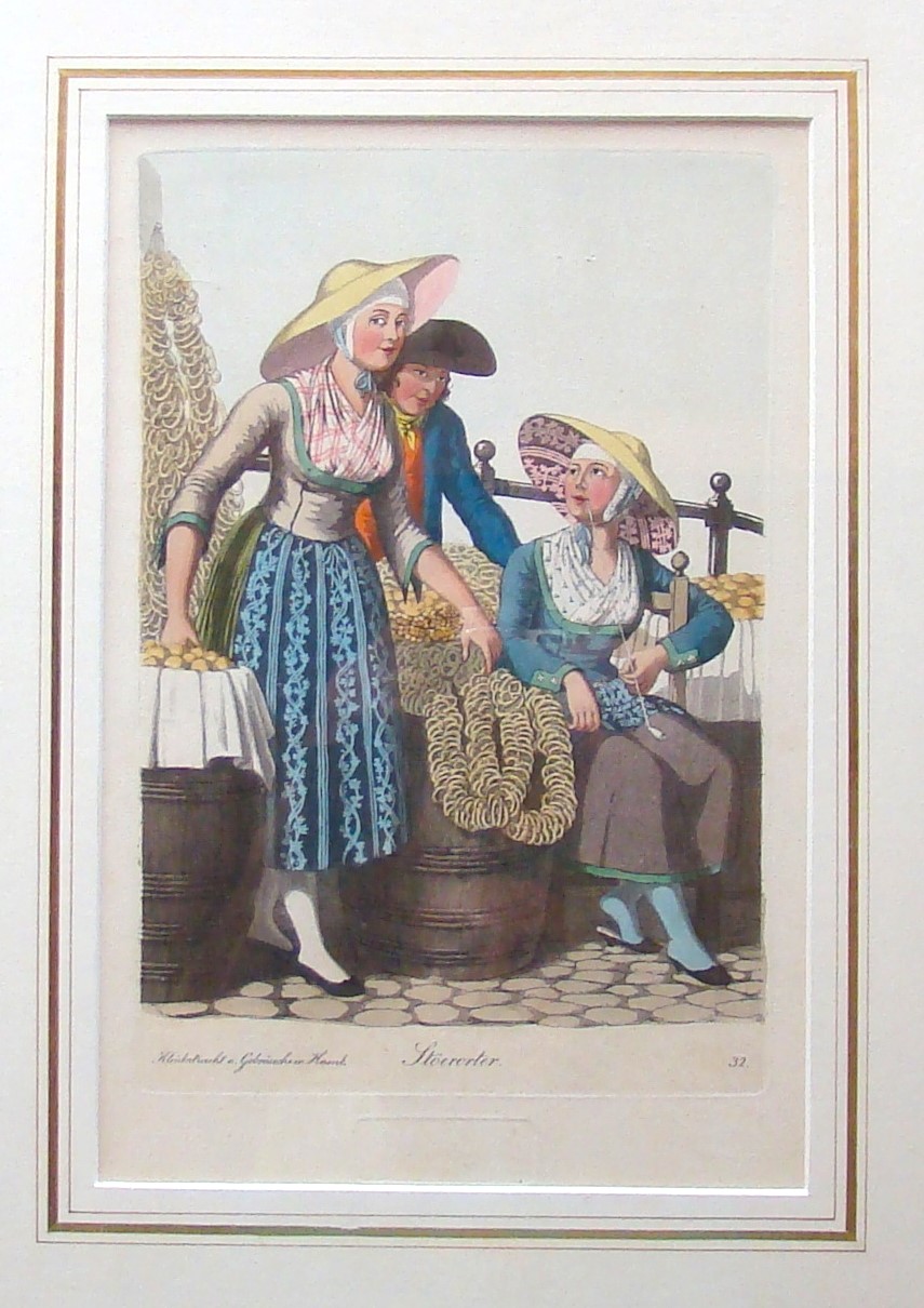 Kleidertracht und Gebräuche in Hamburg, Lithographie, in Passepartout gerahmt, betitelt und signiert im Stein, 19.5 x 29.5 cm, um 1820