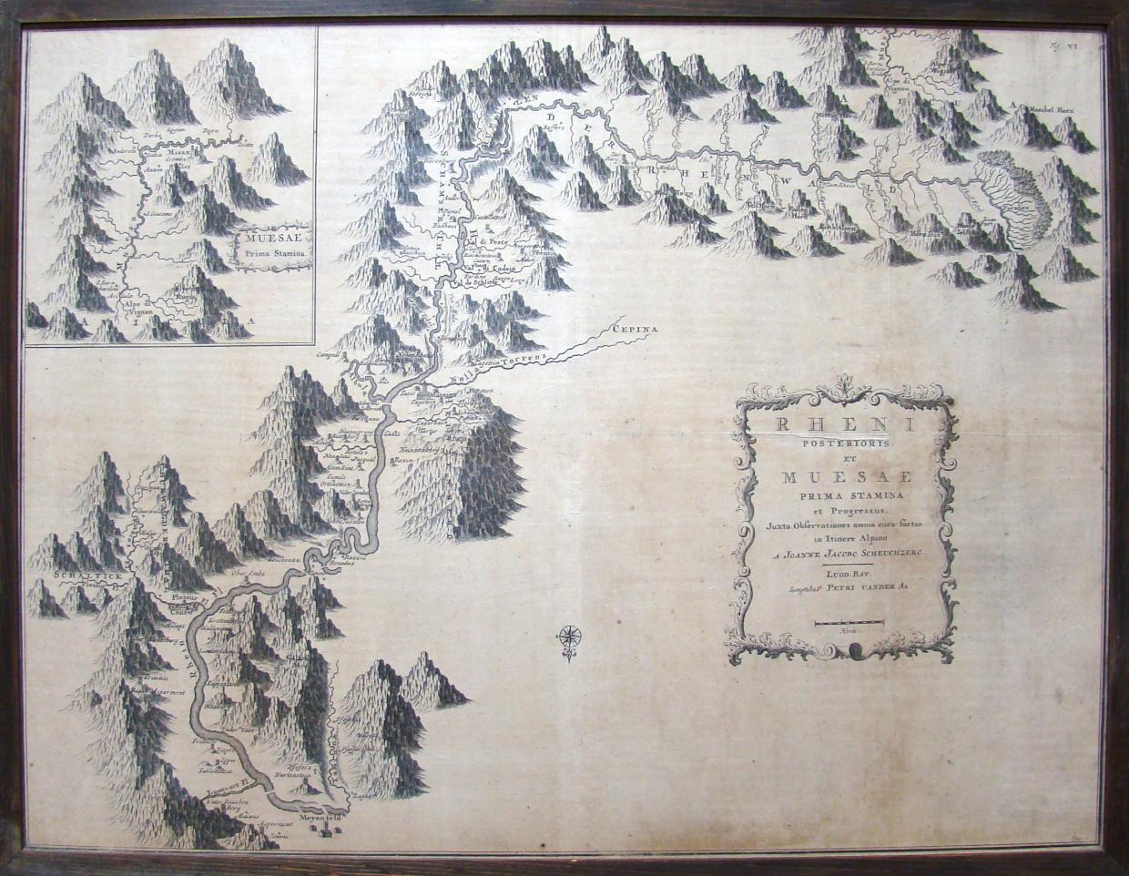 Scheuchzer, Johann Jakob ( 2. August 1672, Zürich 23. Juni 1733, Zürich Rheni posterioris et Muesae prima stamina et progressus juxta observationes omnia cura factas in Itinere Alpino a Johanne Jacobo Scheuchzero