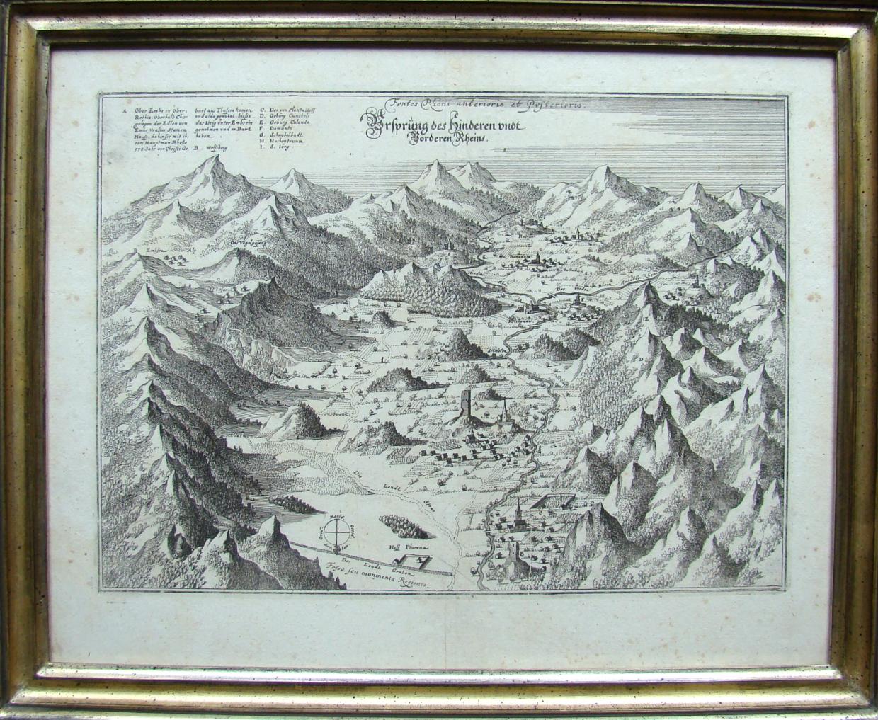 Merian, Matthäus (1593 Basel - 1650 Langenschwalbach). "Ursprung des hinderen undt vorderen Rheins"